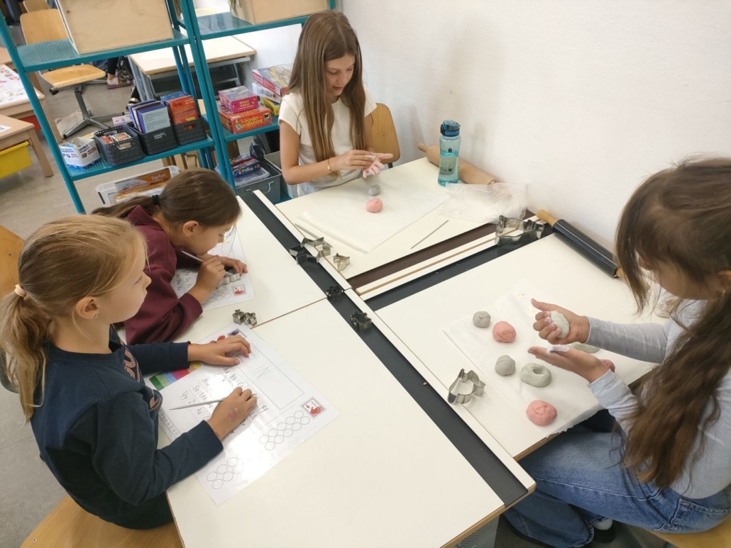 Am Mittwoch, 10. September 2025, haben sich die Göttiklassen 2a und 5a zu einem besonderen Projekt getroffen. Gemeinsam formten die Kinder mit viel Fantasie und Freude tolle Figuren und Formen aus Salzteig.