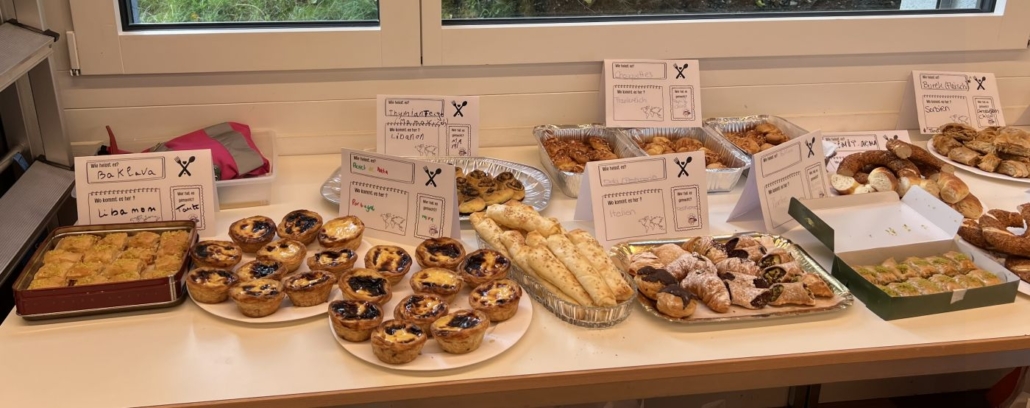 So entstand ein wunderschönes Buffet mit Köstlichkeiten aus aller Welt – von Engadiner Nusstorte über Empanadas, Baklava, Pão de queijo, Buk Misri und vielem mehr.