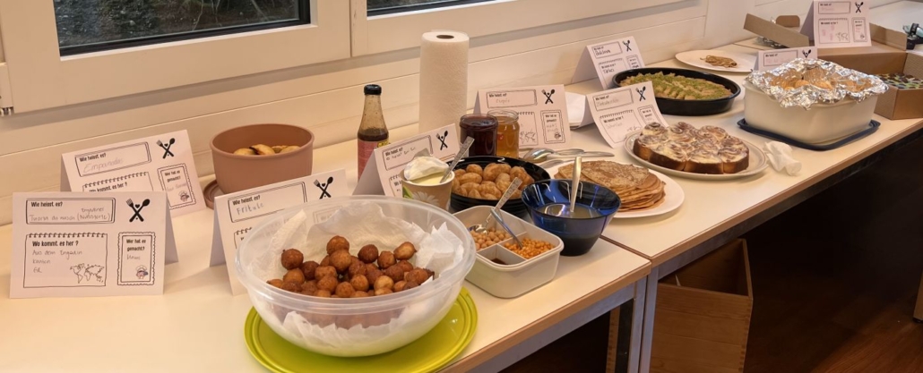 Zum grossen Abschluss organisierten wir einen kulinarischen Zvieri für die Kinder und ihre Eltern. Viele Familien brachten eine Spezialität aus ihrem Land oder aus einem Land, das sie gut kennen, mit.
