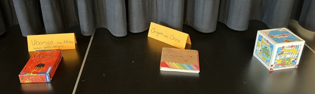 Neben dem Schlemmen stellten die Kinder ihren Eltern stolz ihre Länder-Plakate vor, schauten Bücher zum Thema an und konnten Spiele aus verschiedenen Ländern ausprobieren – etwa Mikado aus Japan, Fadenspiele, Ubongo aus Afrika oder Origami aus China und vieles mehr.